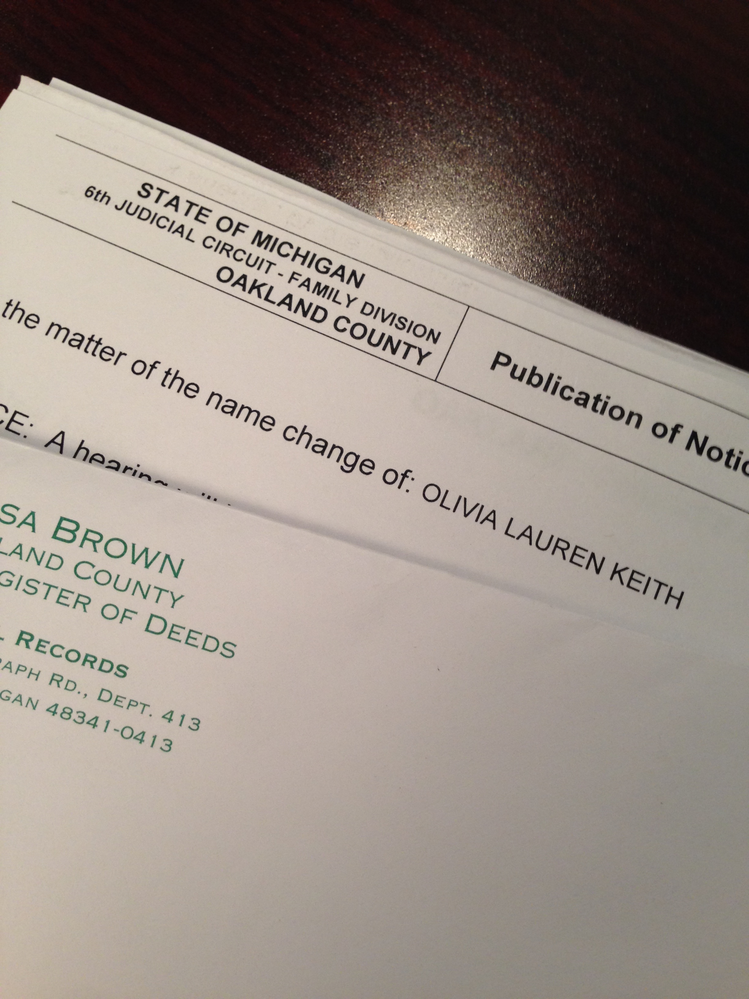 On the heels of our story going public, we received an official court date to change Hunter’s name. In about a month, Olivia Lauren will forever more be known as Hunter Jordan. Once that is final, we can change his name on the social security card, the birth certificate and passport. Since he is not yet driving, we don’t have to worry about changing the license.